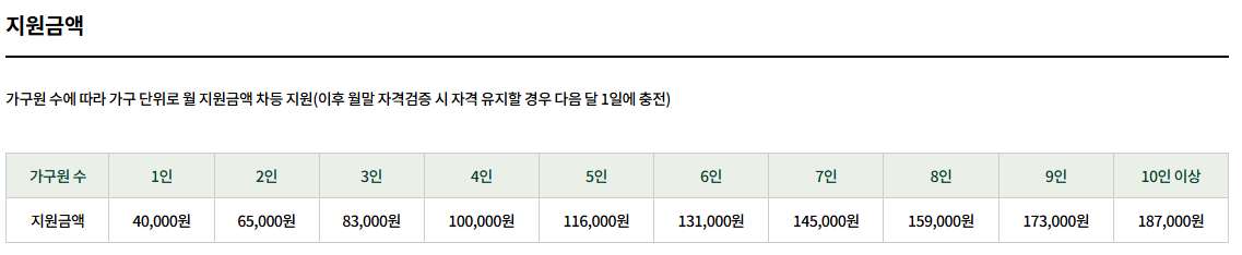 가구원 수에 따라 다음과 같이 지급이 됩니다.
